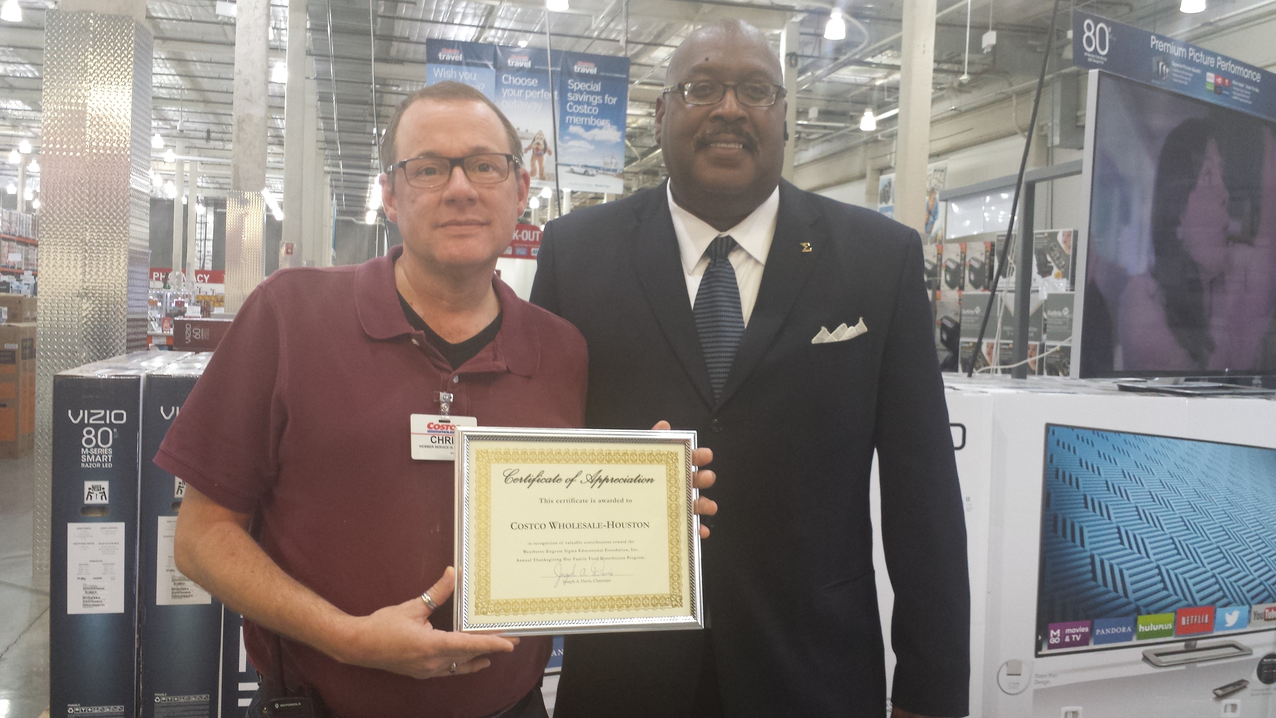 Certification of Appreciation presented to Costco Wholesale - Houston