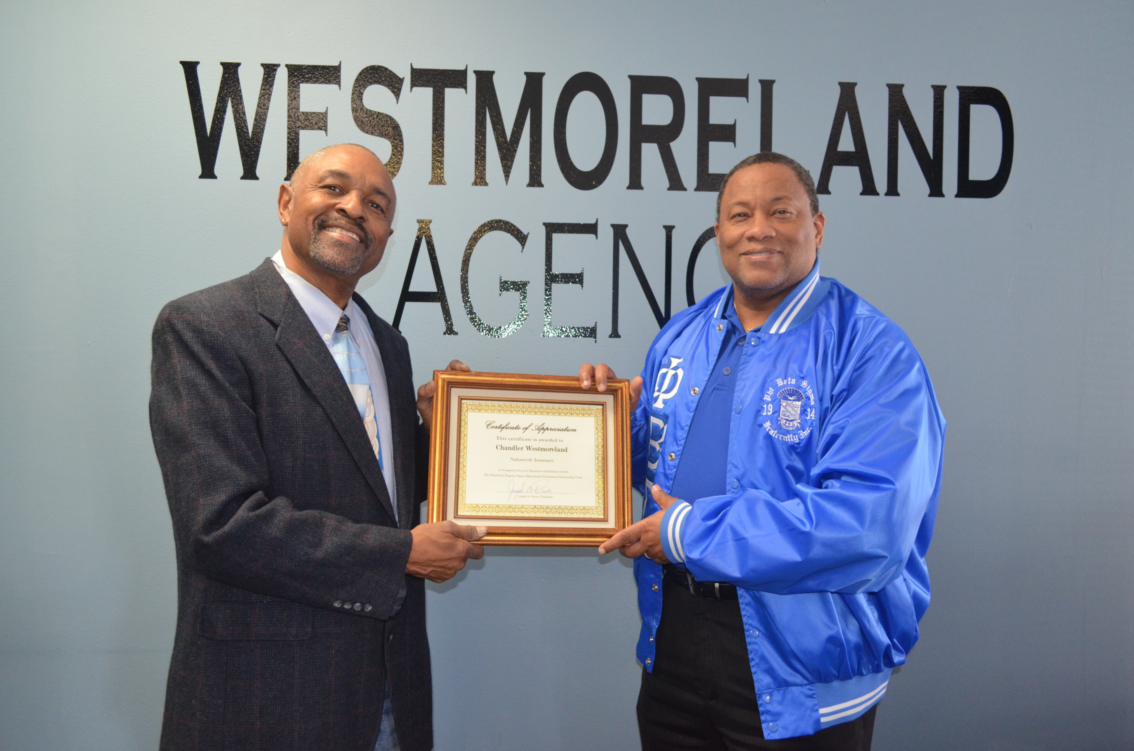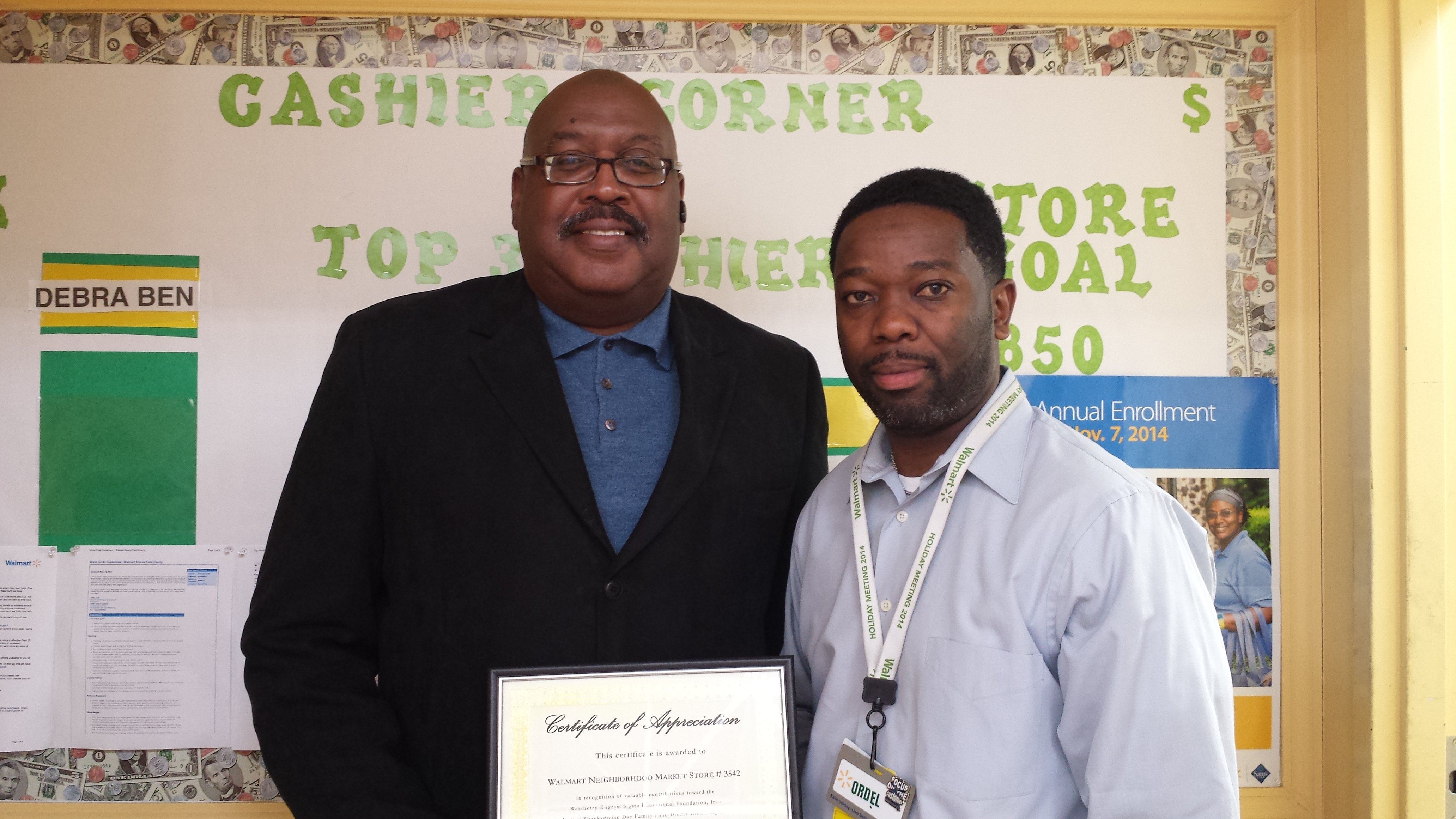 Certification of Appreciation presented to Walmart Neighborhood Market, Store # 3509 for Sponsorship of 2015 WESEF and Alpha Beta Sigma Chapter, Phi Beta Sigma Fraternity, Inc. Thanksgiving Basket Drive.