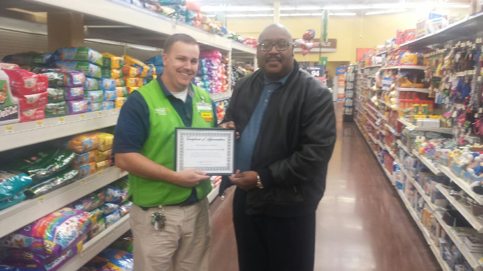 Certification of Appreciation presented to Walmart
